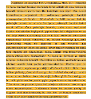 "In our country, for years, there had been Psychological Operation Units under both Military, National Intelligence Agency and even under the Police Forces with different names. These units’ real function was to organise the institutions through executing coded psychological action operations. (…) Such events to indoctrinate the civil citizens won’t be ended soon seemingly (…) They only think discretion is the important notion."